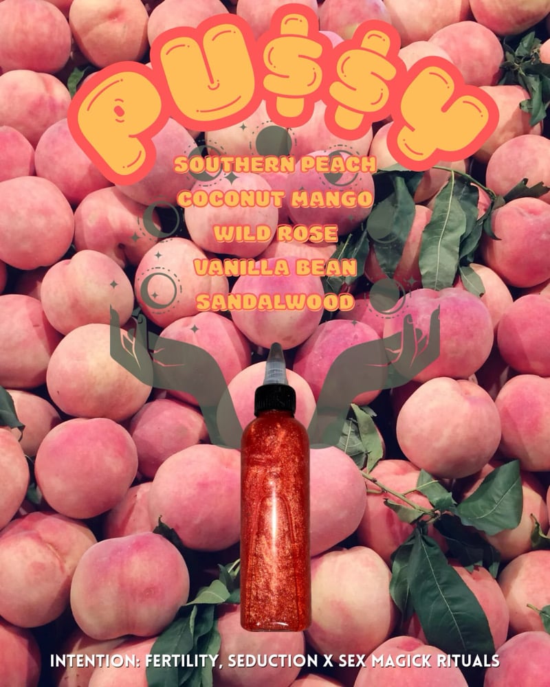 the streets were asking for it so the scent of this month is PU$$Y, my sex magick intention oil. i upgraded the scent by adding sandalwood and honey to the mix and i feel like its even more intoxicating than before!